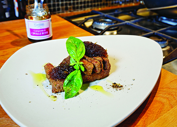 FEGATO AL PANE E ROSMARINO CON COMPOSTA DI CIPOLLE ROSSE